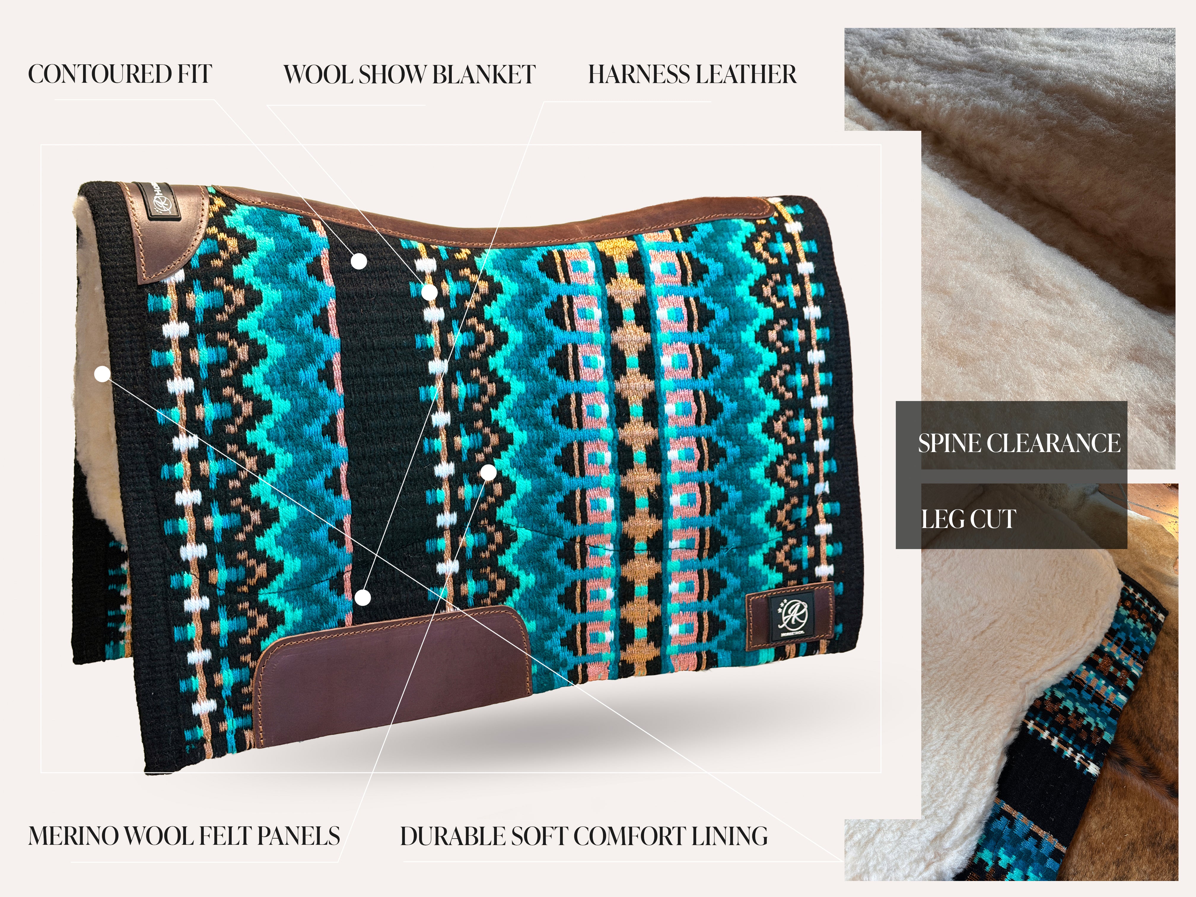 Eén pad die alles combineert: de uitstraling van een luxe showblanket en het hoogwaardig comfort van een anatomisch gevormde Merino wollen pad.